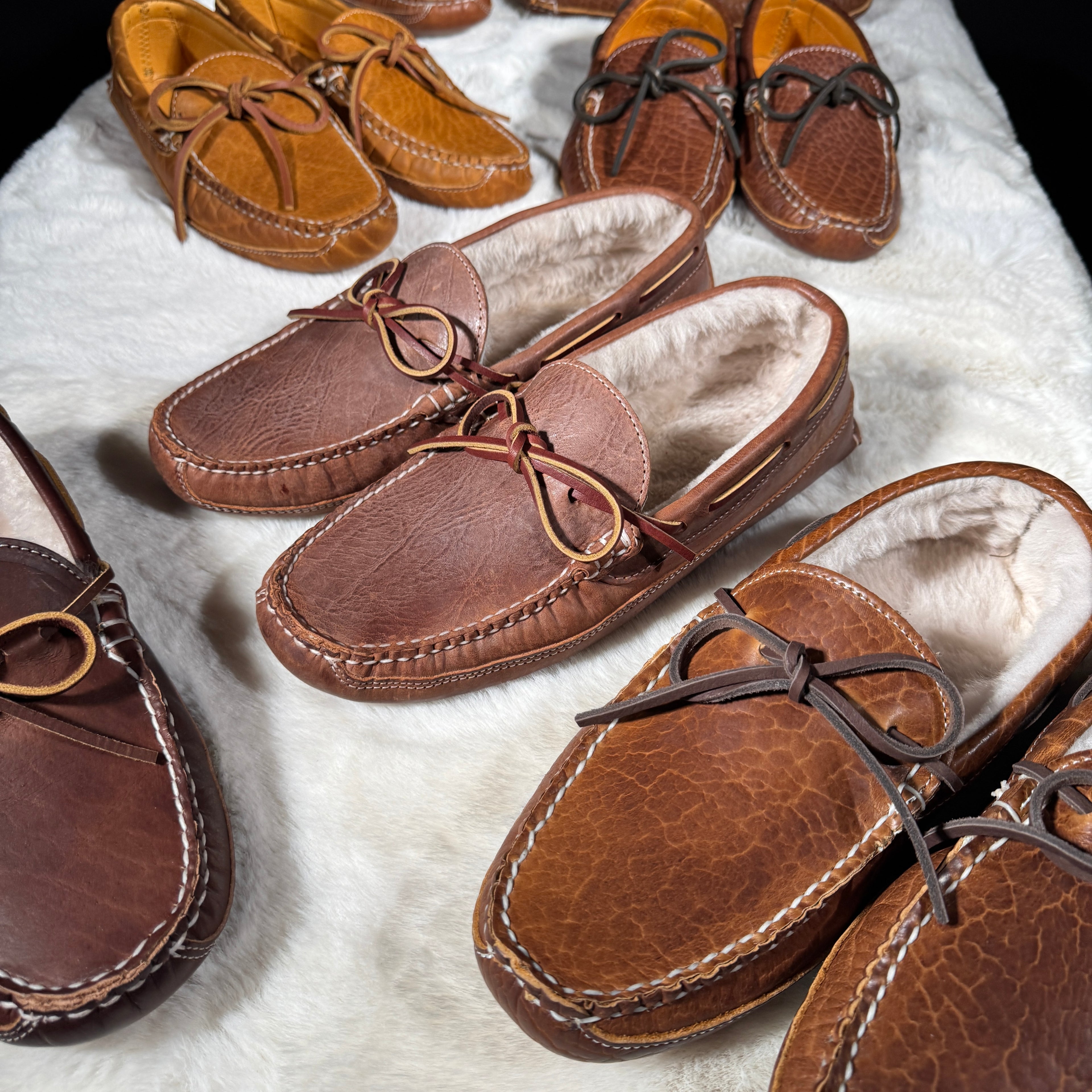 Experience the finest hand-sewn craftsmanship, proudly made in Maine, USA. Our American Bison leather moccasins offer unmatched durability, softness, and timeless style—built to last, made for those who appreciate true quality.